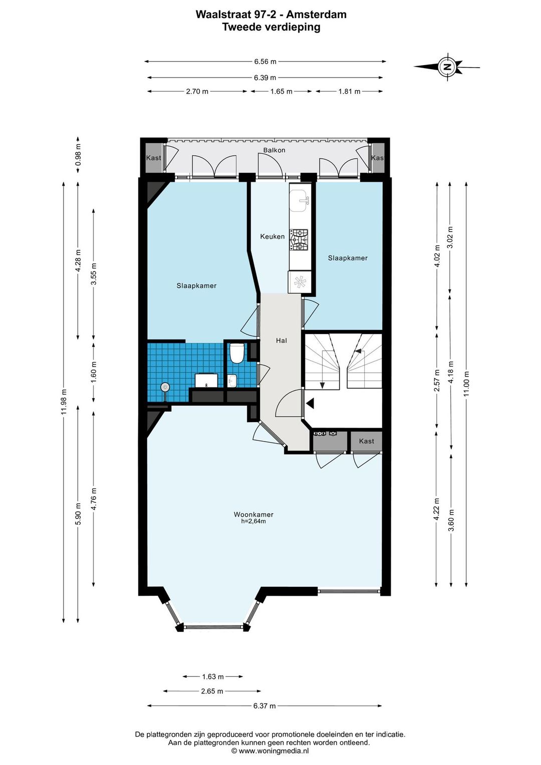 hal, gang, 2 volwaardige slaapkamers en keuken aan de achterzijde, separaat toilet, badkamer met inloopdouche en wastafelmeubel, zeer ruime woonkamer aan de voorzijde (met een prachtige en lichte raampartij), luxe keuken voorzien van alle denkbare (inbouw)apparatuur (afzuigkap, koelkast, vriezer, combimagnetron, vaatwasser en zelfs een wasmachine). Beide slaapkamers en de keuken hebben toegang tot het aan de achterzijde gelegen BALKON.